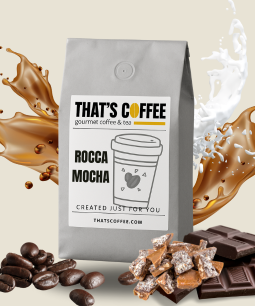 Rocca Mocha flavored coffee has the essence of a carefully crafted gourmet chocolate coffee. Just imagine morsels of roasted pecans, creamy caramel, and rich maple syrup, blended with high quality Swiss chocolate.